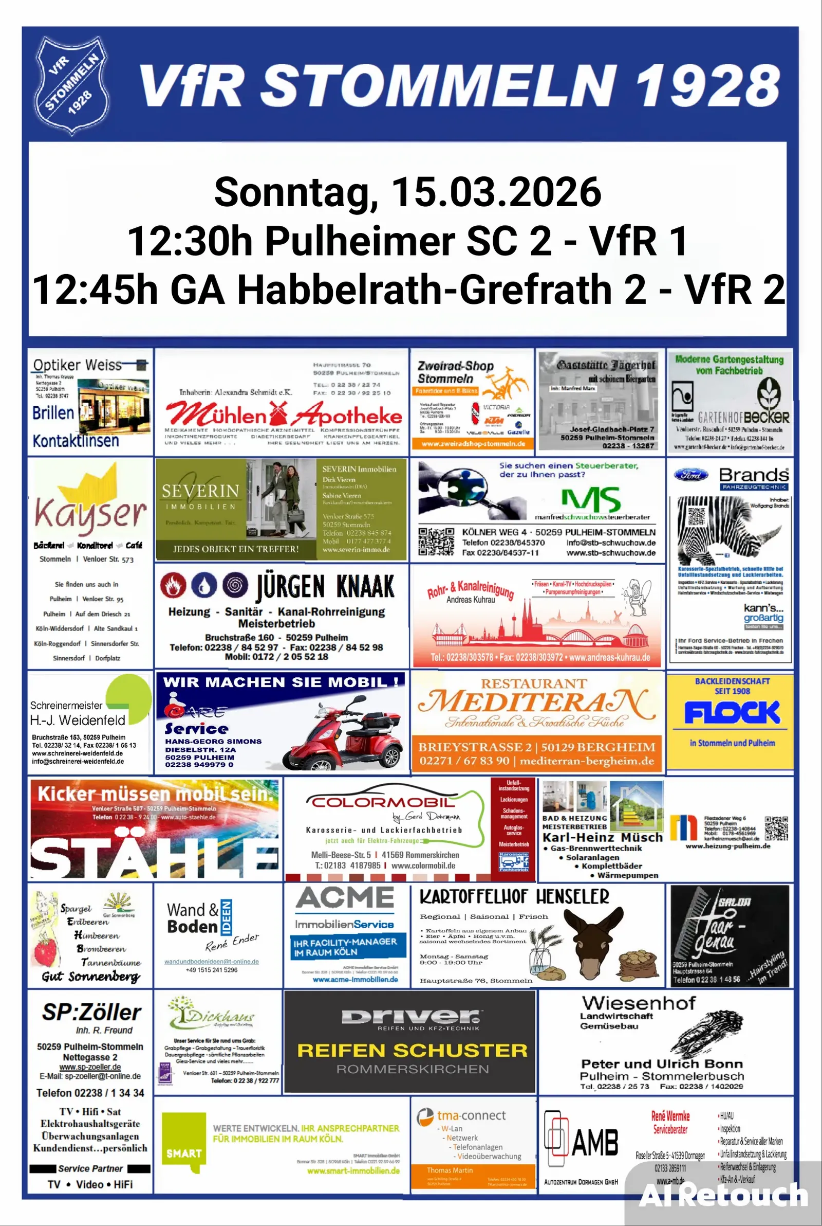 Beide Mannschaften freuen sich über Eure Unterstützung bei ihren Auswärtsspielen und vielleicht schaffen wir es ja gemeinsam, sechs Punkte an diesem Spieltag mit nach Stommeln zurückzubringen. Wir sind gespannt …